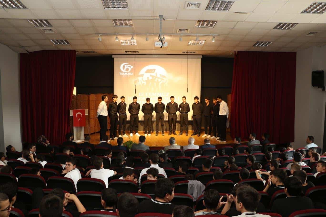 Program; saygı duruşu ve İstiklâl Marşı ile başladı. Selâ ve Kur'an-ı Kerim tilavetinin ardından, 15 Temmuz Gazisi İlhami Çil konuşma yaparak o gece yaşadıklarını ve milletimizin kahramanca direnişini anlattı. Katılımcıların duygu dolu anlar yaşadığı programda, bir daha böyle acıların yaşanmaması temennisi dile getirildi. Öğrencilerimizin şiir, türkü ve koro dinletileriyle devam eden program, "Son Emir: Şehadet" isimli tiyatro gösterisi ile sona erdi.